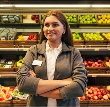 Equipes de rayons frais, responsables fruits & légumes, boucherie, poissonnerie, boulangerie, personnel en réserve et en caisse.